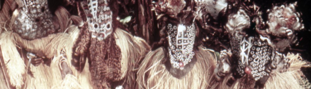 Photo above: Four masked and fully dressed circumcisers of the Mukumo boys’ initiation rites, performing at the outskirts of the village in a partly cleared banana grove (Photo Biebuyck, 1956).